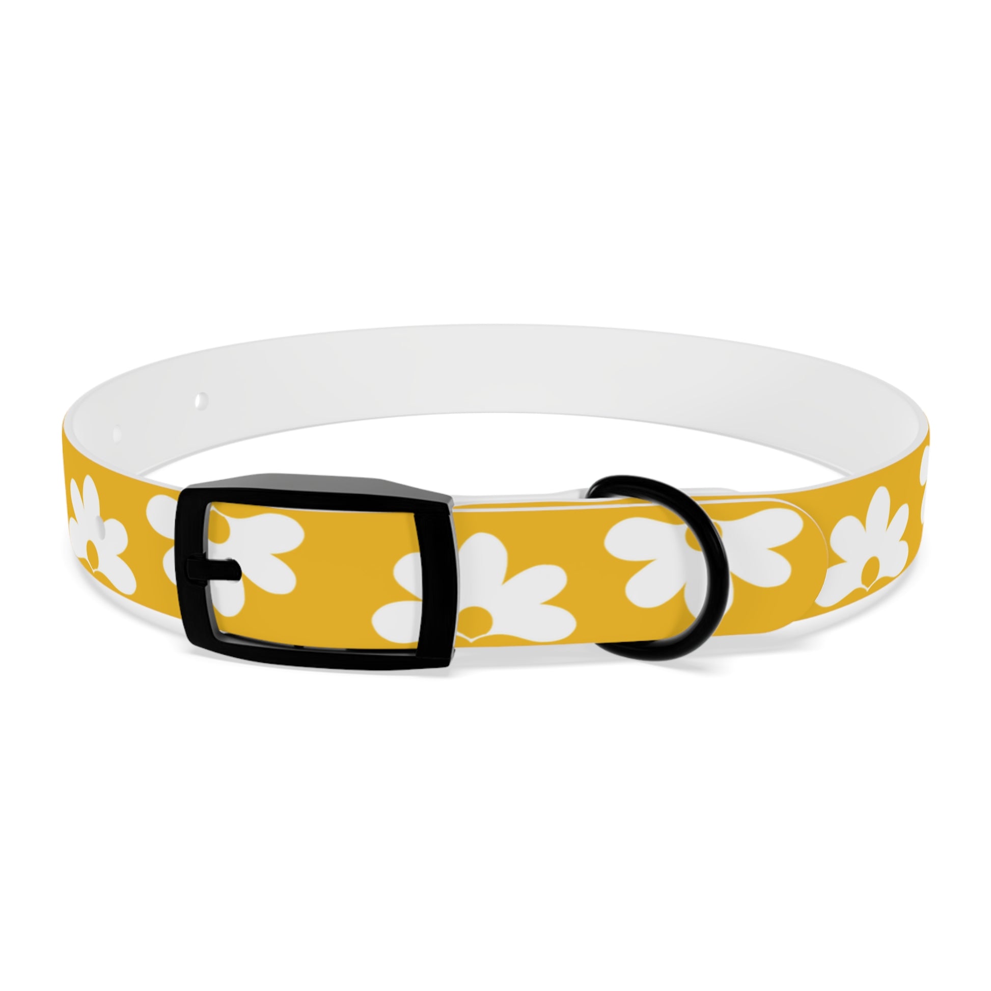 Let your pup wear a little island legend around their neck. This bright yellow dog collar features a clean, white silhouette print of the native Hawaiian naupaka flower, known for its half-blossom shape and the bittersweet love story it carries. Subtle and simple, the design adds a touch of aloha without overwhelming your dog’s natural charm.